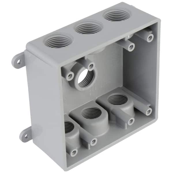 2 Gang Weatherproof Deep Box Five 3 4 In Threaded Outlets Gray Electrical Outlet Boxes Amazon Com